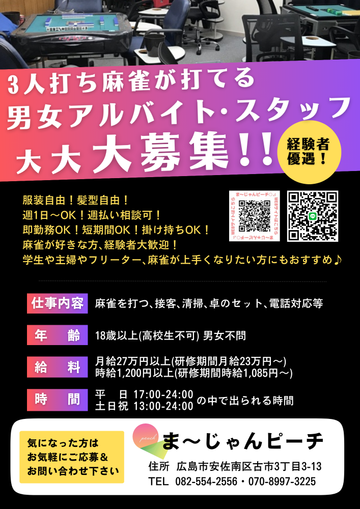 広島初!少牌マイティ&スーパービンゴ&ふっトビウオ&ふっトビ少牌マイティの打てる三麻のお店♪